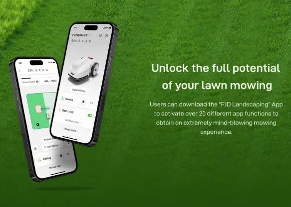 Users can download the “FJD Landscaping” App by clicking on the corresponding icon below according to the system of mobile devices. Unlock over 20 different app functions to obtain an extremely mind-blowing mowing experience.
